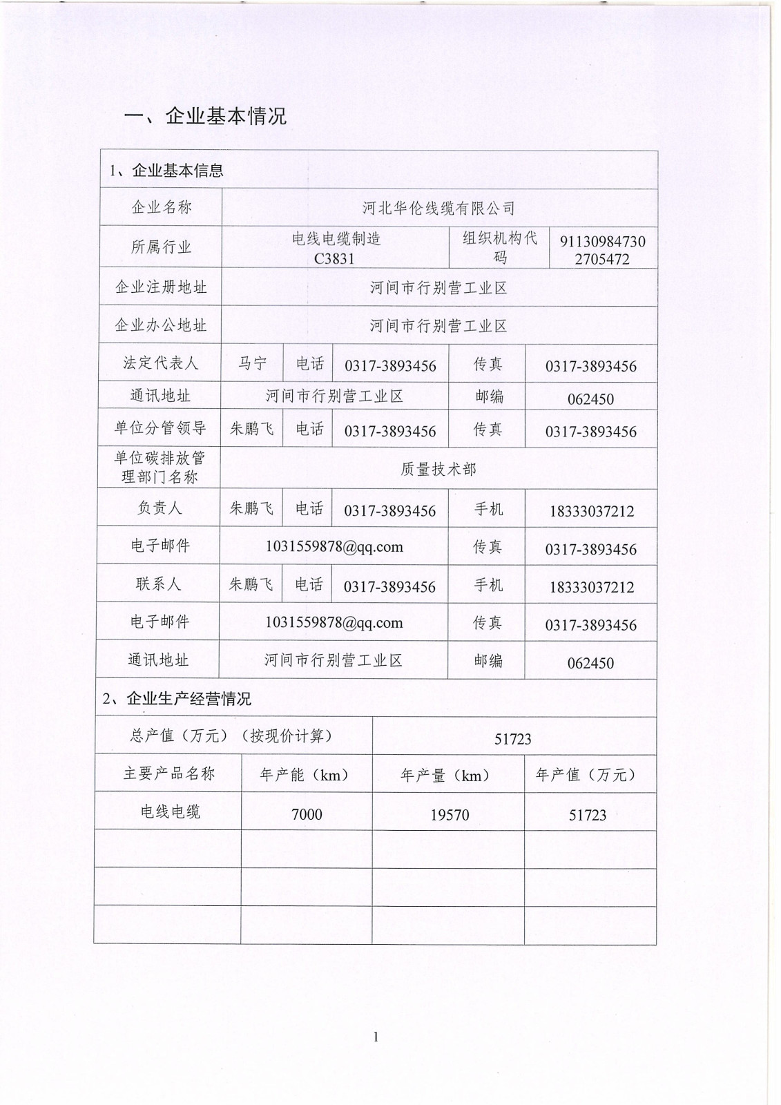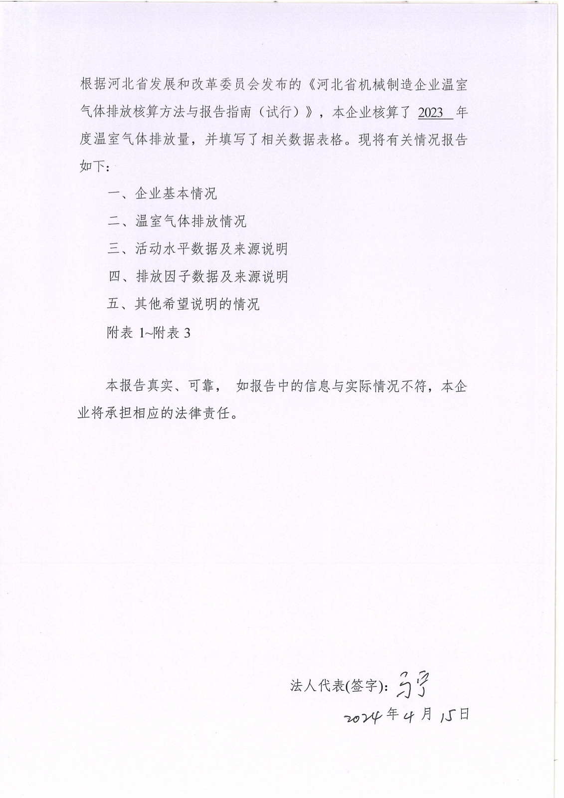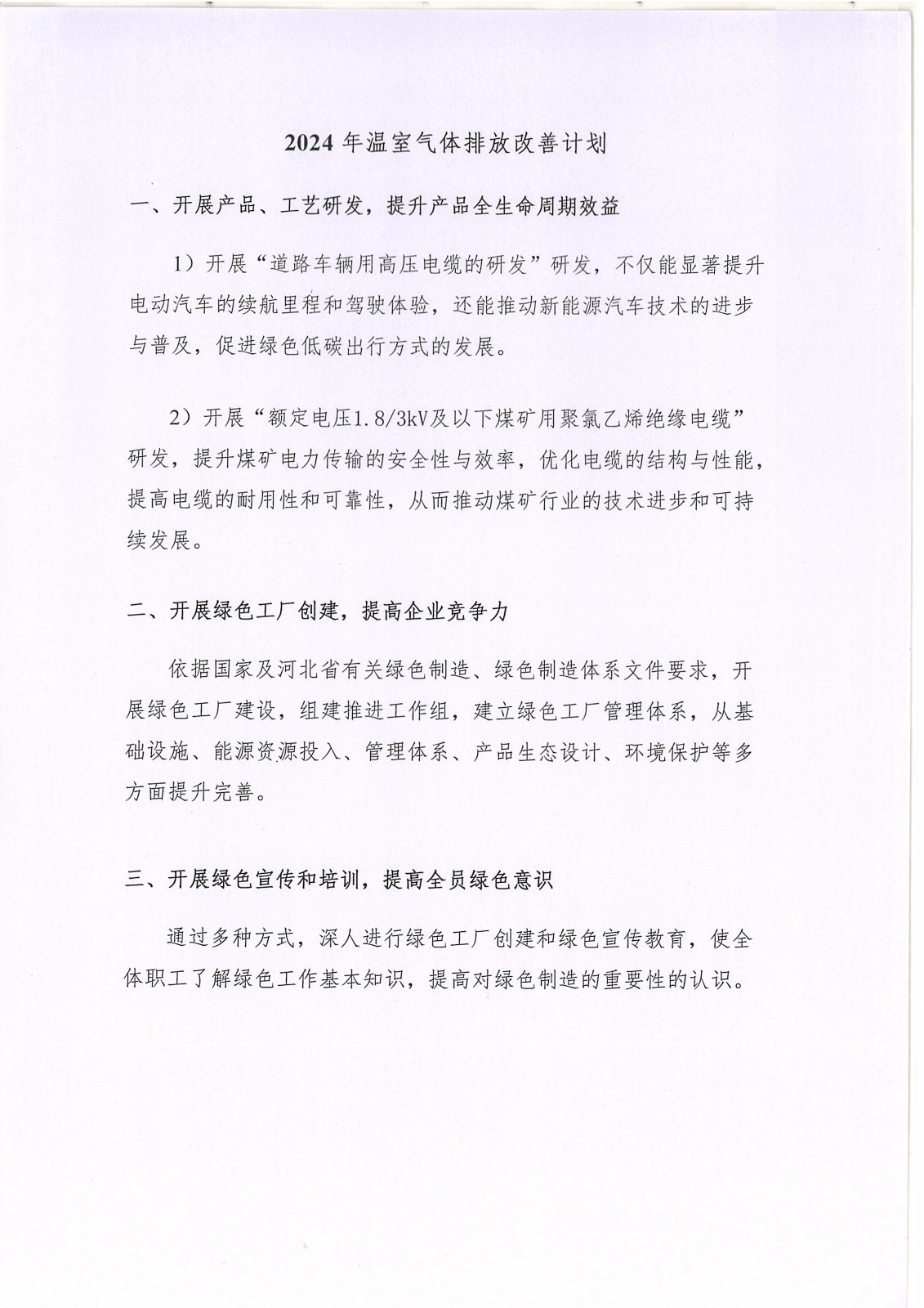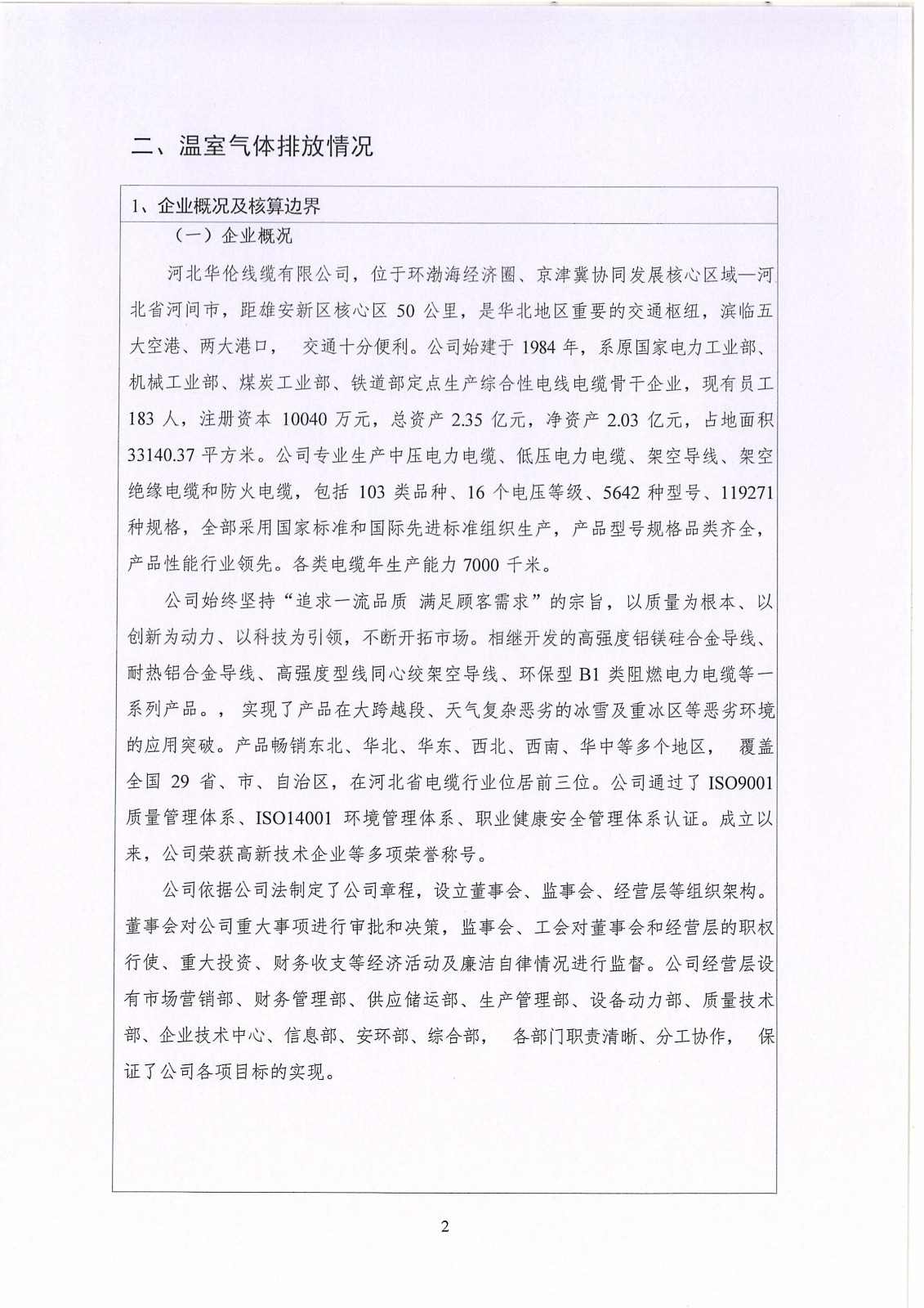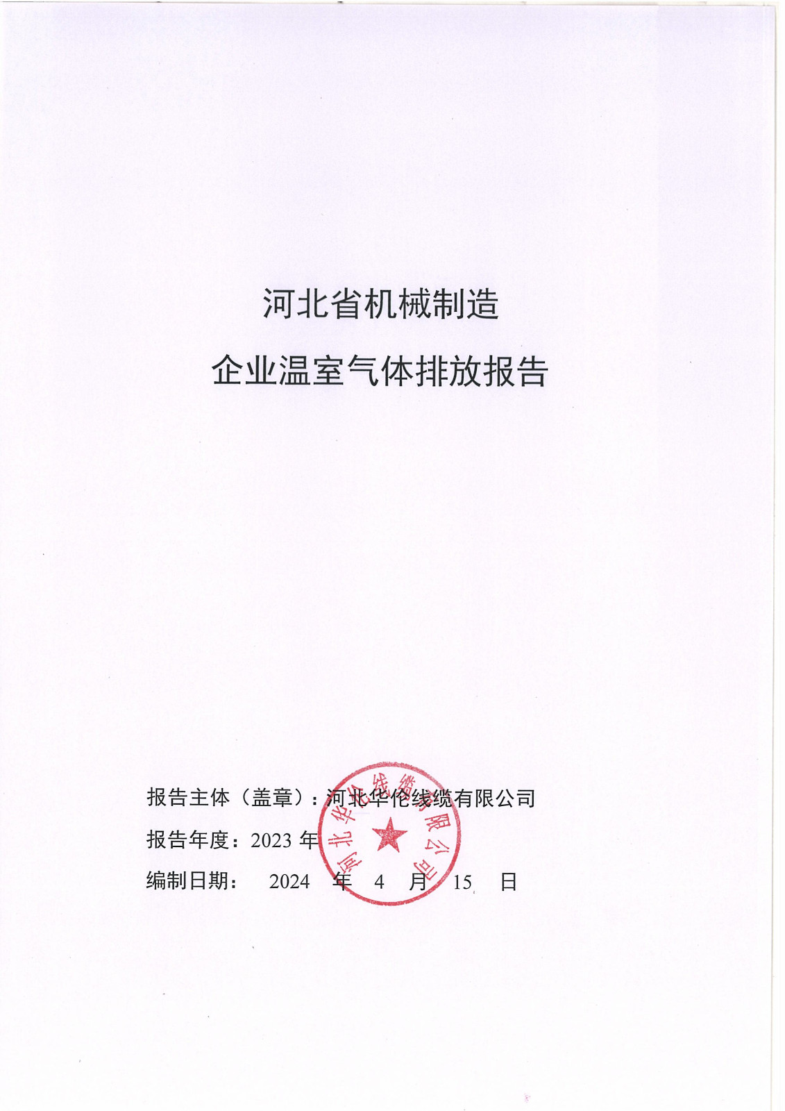 河北華倫線纜有限公司2023年溫室氣體排放報(bào)告及改善計(jì)劃