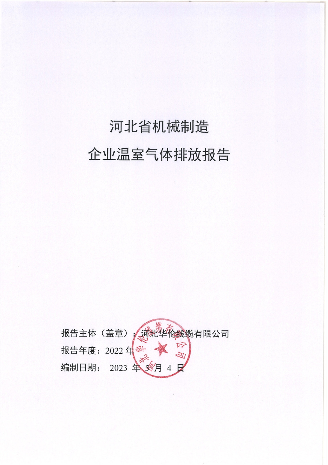 河北華倫線纜有限公司2022年溫室氣體排放報(bào)告及改善計(jì)劃